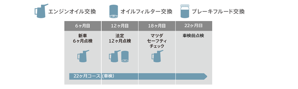 新車購入をご検討中のお客様向けのプランです。新車購入から初回車検までに必要な "6ヶ月毎の点検とエンジンオイル・オイルフィルター交換" をパッケージにしたプランです。