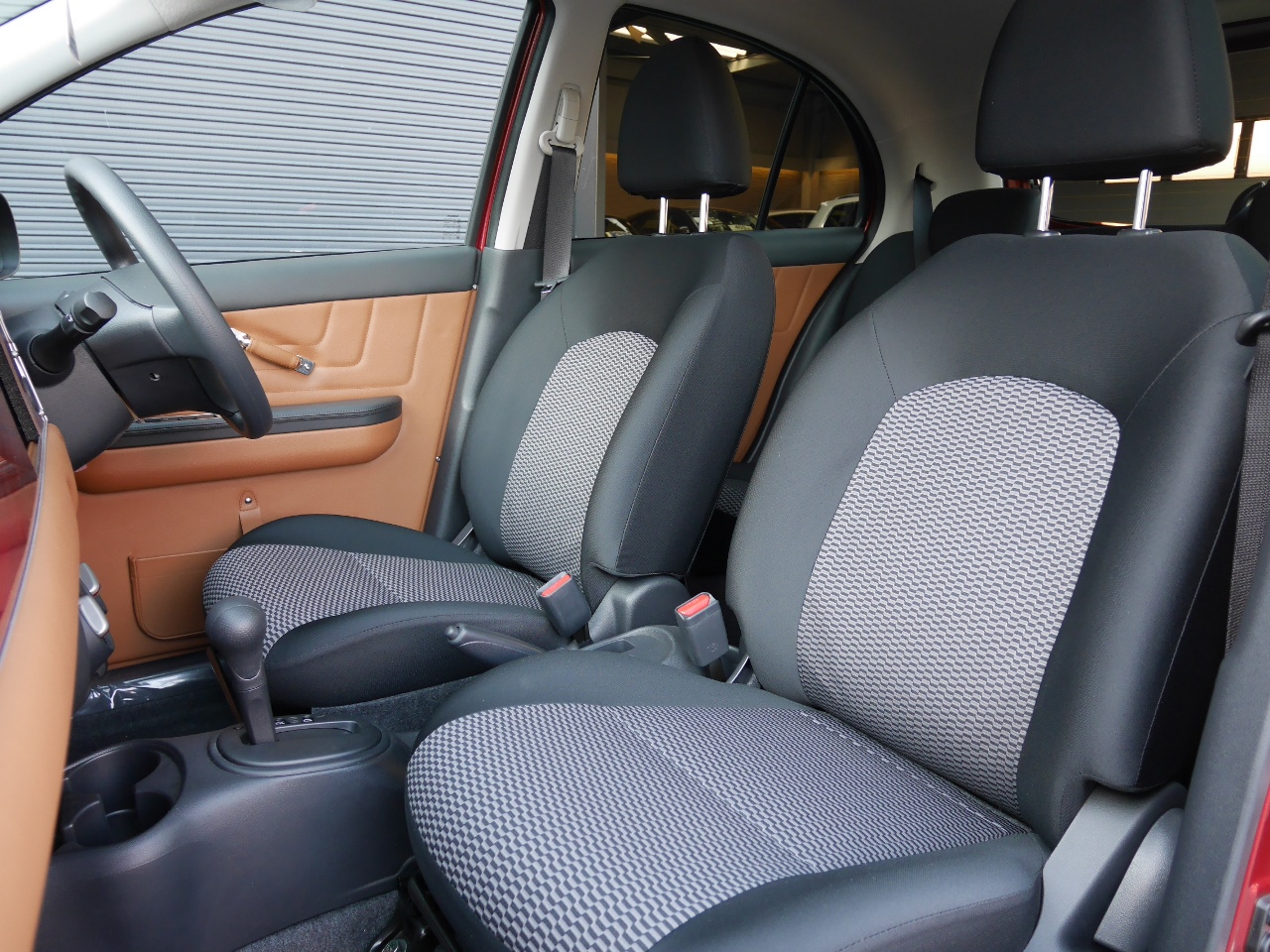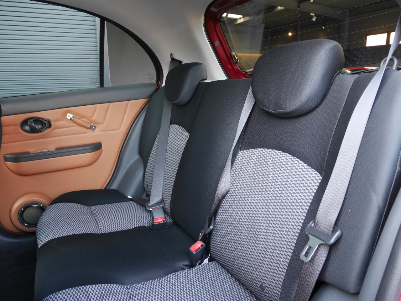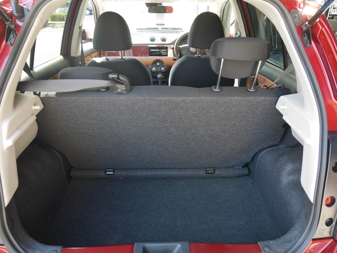 ベンチシート 前席シートが完全には独立しておらず、長椅子状につながって見える構造になっています。