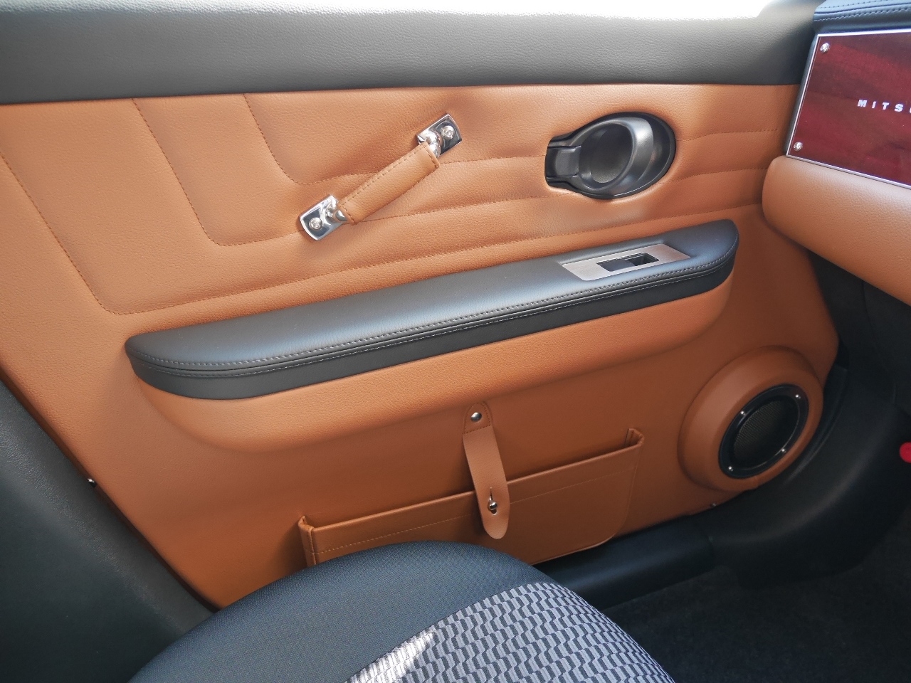 ハーフレザー シートの一部分が革張りになっています。