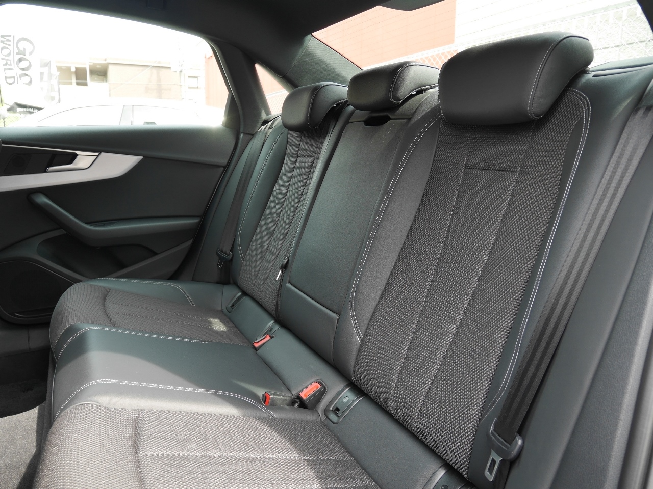 ハーフレザー シートの一部分が革張りになっています。